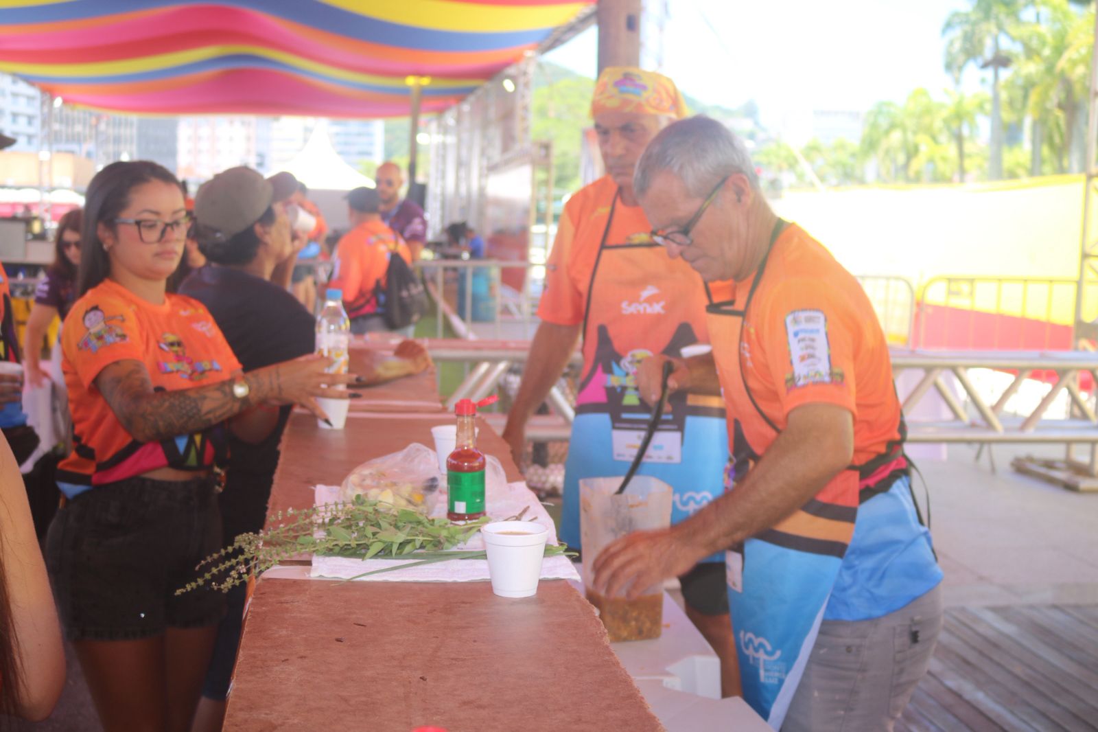 Existe uma dupla de voluntários de mãos calejadas, Walter Menezes e o Cesário Elias, que misturam ingredientes com risos e histórias. Cada colherada é um tributo à tradição, um canto à cultura açoriana temperada por memórias.