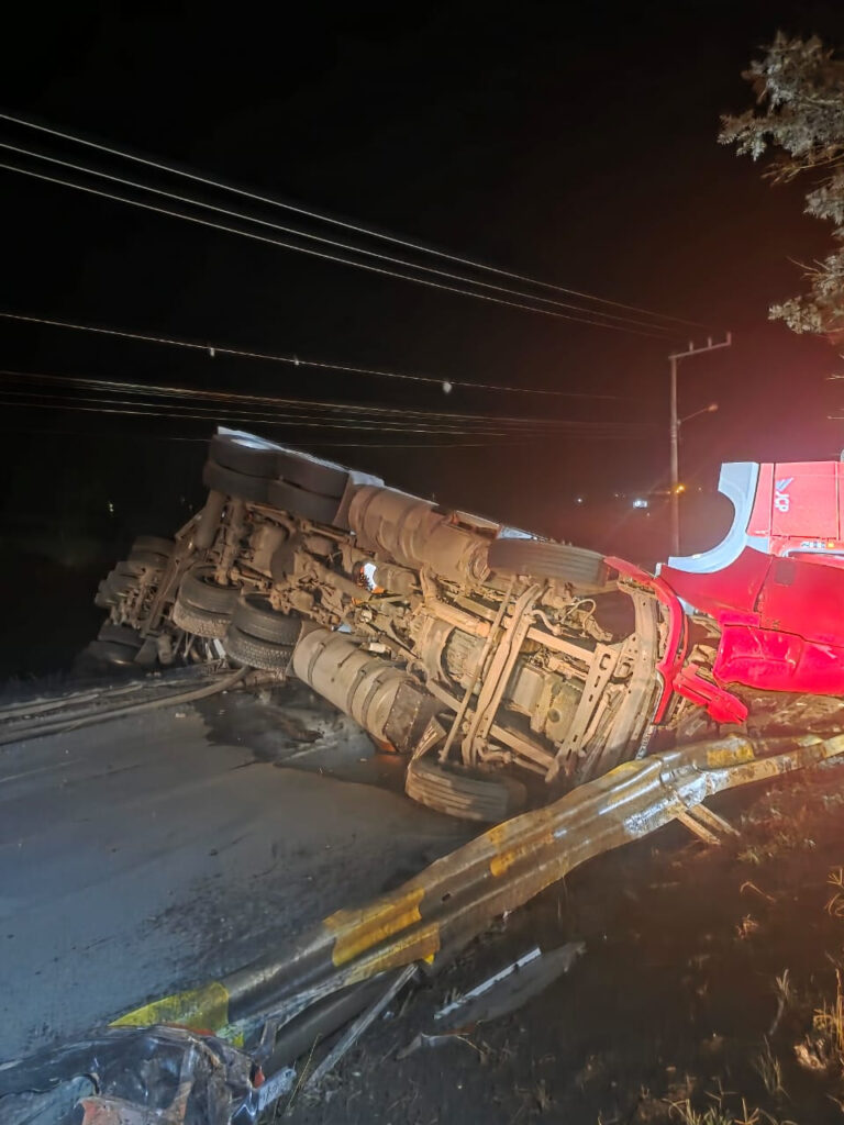 O acidente ocorreu na madrugada desta segunda-feira (12) e resultou na interdição total da BR 282 em Águas Mornas, na Grande Florianópolis. Uma pessoa morreu na ocorrência que envolveu dois caminhões, sendo um caminhão betoneira, utilizado no transporte de cimento, e um caminhão carregado com verduras.