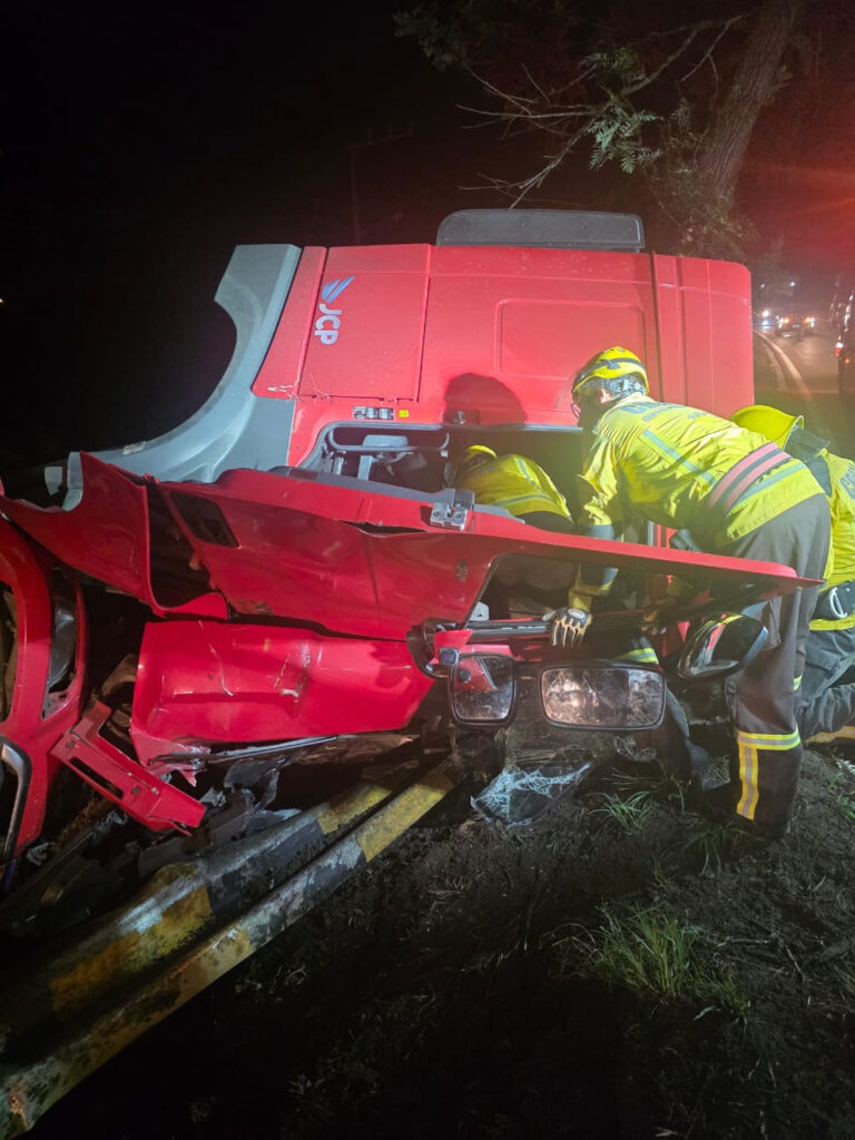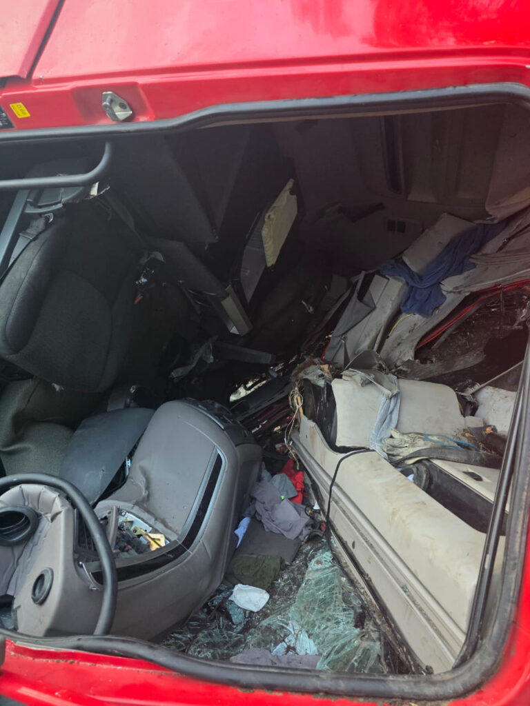 A colisão envolveu dois caminhões e uma das vítimas ficou presa nas ferragens