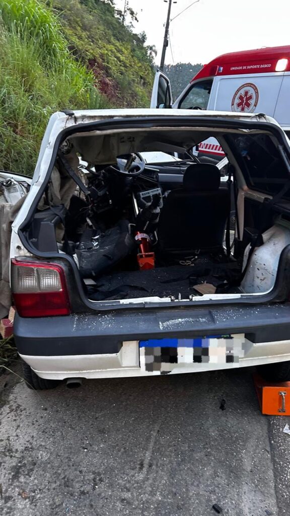 Segundo o relatório operacional, o condutor do carro Fiat Uno branco ficou encarcerado no veículo após a colisão com o ônibus. Ele foi encontrado consciente, mas com uma fratura em fêmur, e permanecia preso por conta da deformação do painel do automóvel sobre a perna.