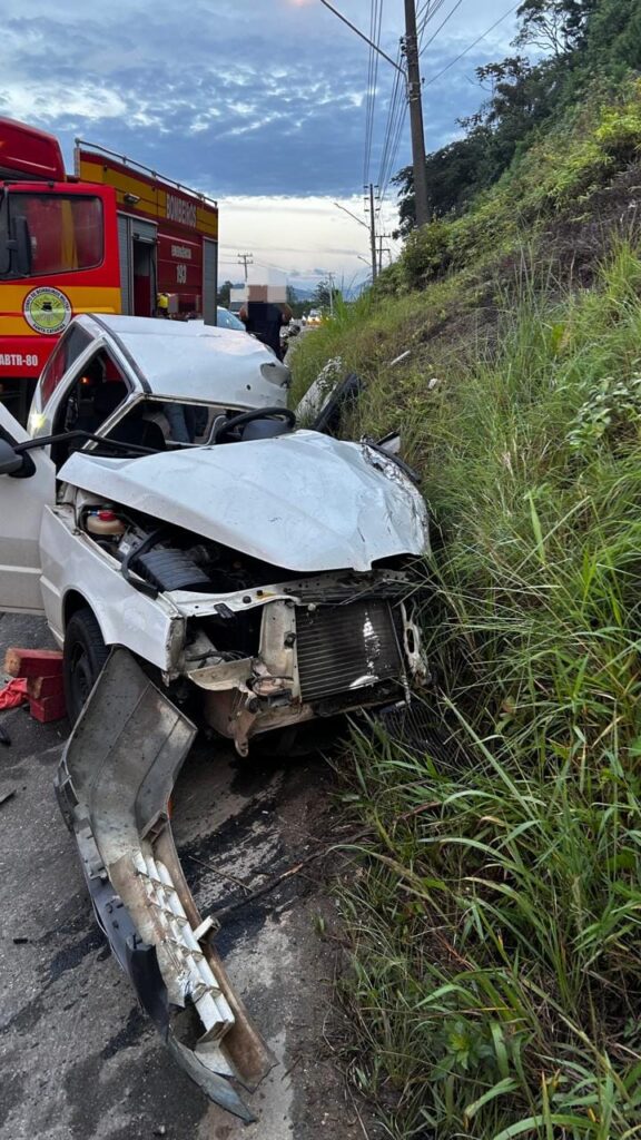 Um grave acidente de trânsito envolvendo um carro e um ônibus deixou um homem preso às ferragens na manhã desta segunda-feira (13), na rodovia SC-410, em São João Batista, na Grande Florianópolis. O acidente foi registrado por volta das 6h, e mobilizou equipes do Corpo de Bombeiros Militar, com apoio de viaturas do município e de Canelinha, além do SAMU de Nova Trento.
