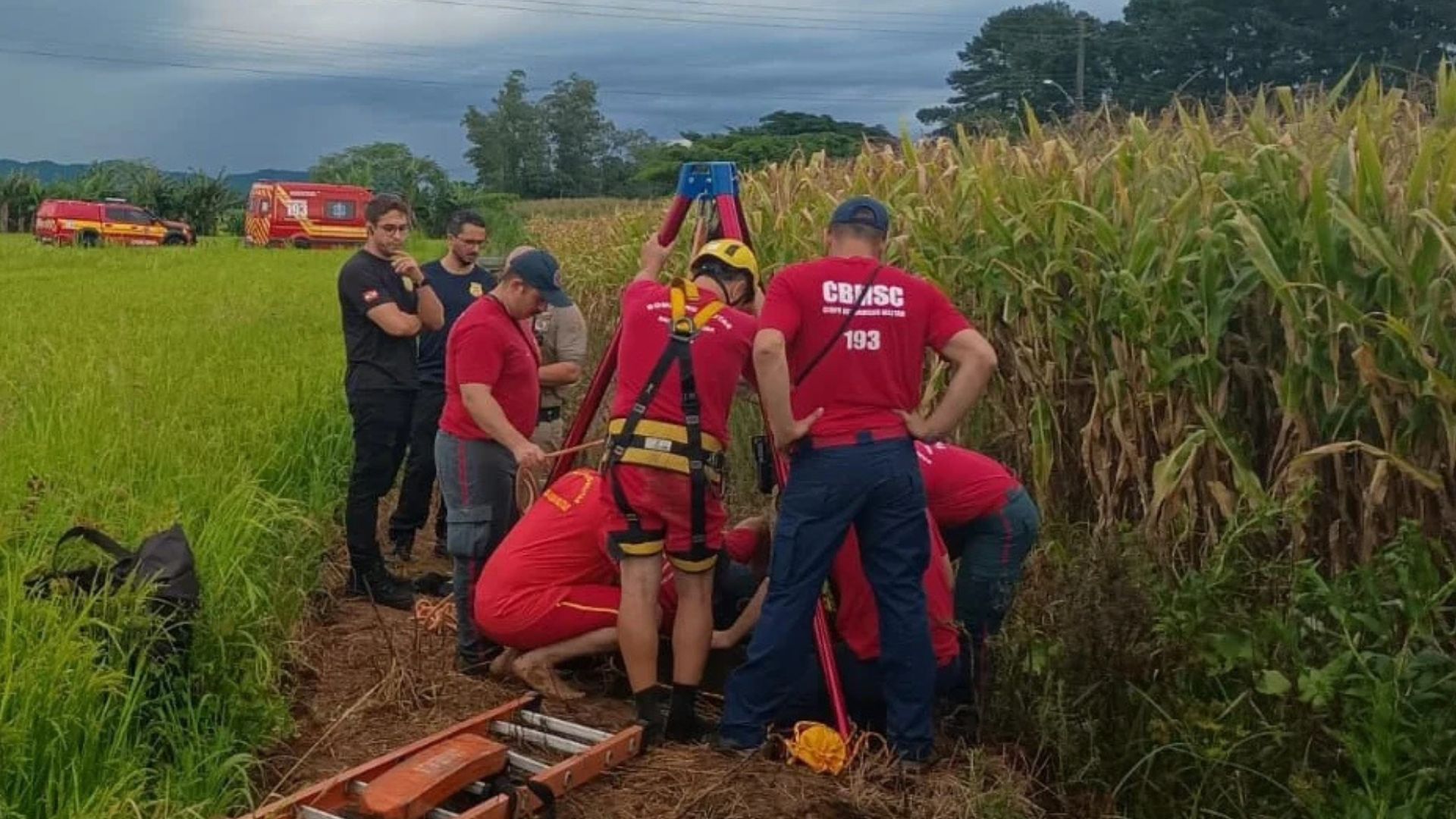 Os bombeiros, então, iniciaram a busca pela segunda vítima, que ainda estava desaparecida. Após algum momento, ela foi encontrada dentro de uma caixa de irrigação em um córrego no meio de uma plantação de arroz. Na ocasião, foi preciso utilizar um tripé de resgate e uma escada para retirar a vítima, que já estava sem vida.
