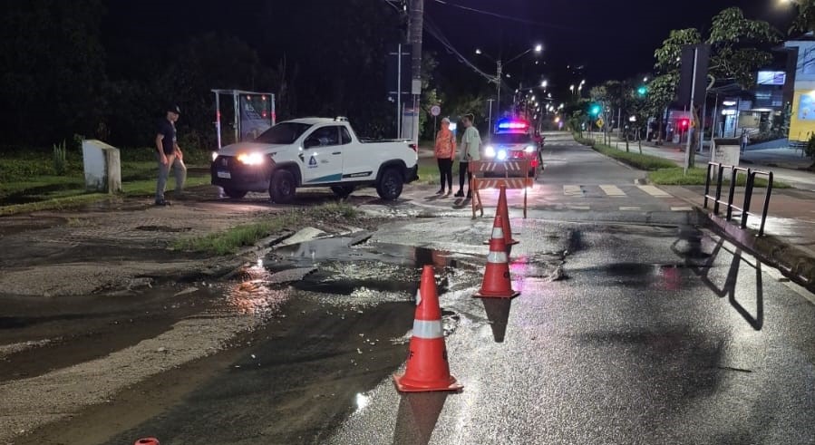 Desde a madrugada equipes da Casan trabalham para a normalização da situação tanto pela distribuição de água potável, quanto para a liberação da via que permanece com uma das pistas bloqueadas.