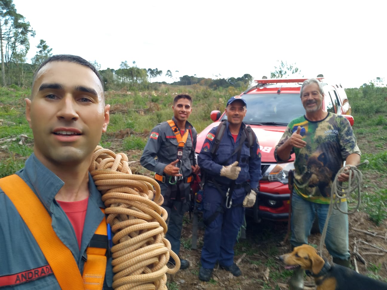 Um cão foi resgatado após cair em um penhasco com mais de 20 metros de altura na tarde desta quarta-feira (25), na localidade de Lambedor, área rural de Lages, na Serra catarinense. Corpo de Bombeiros Militar (CBMSC) foi acionado por volta das 16h, e segundo informações repassadas pela Central de Operações Bombeiro Militar (COBOM), três cachorros teriam caído em uma ribanceira.