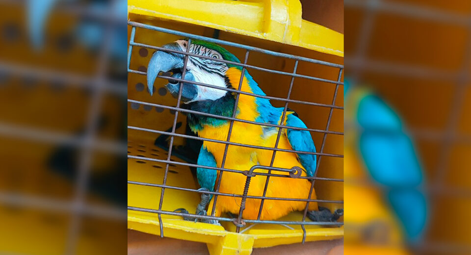 Arara foge de zoológico em SC e é resgatada a mais de 5 km de distância