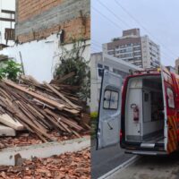 As casas foram destruídas pelas chamas. Imagem: CBMSC. Os moradores conseguiram sair dos imóveis antes que o fogo se alastrasse O incêndio foi