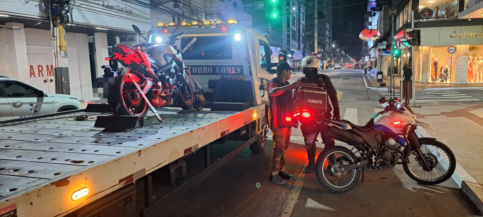 Quinze motocicletas com diversos tipos de irregularidades foram apreendidas no último fim de semana em Balneário Camboriú, no Litoral Norte catarinense. As primeiras apreensões ocorreram na sexta-feira (12), quando três estavam estacionadas em local proibido e ainda estavam com o licenciamento vencido. Na tarde do mesmo dia, um condutor foi flagrado empinando a motocicleta e foi penalizado. Pouco tempo depois, um outro foi visto realizando o retorno sobre o canteiro central.
