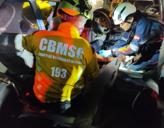 Caminhão capota em ribanceira na BR-282 e motorista fica preso às ferragens