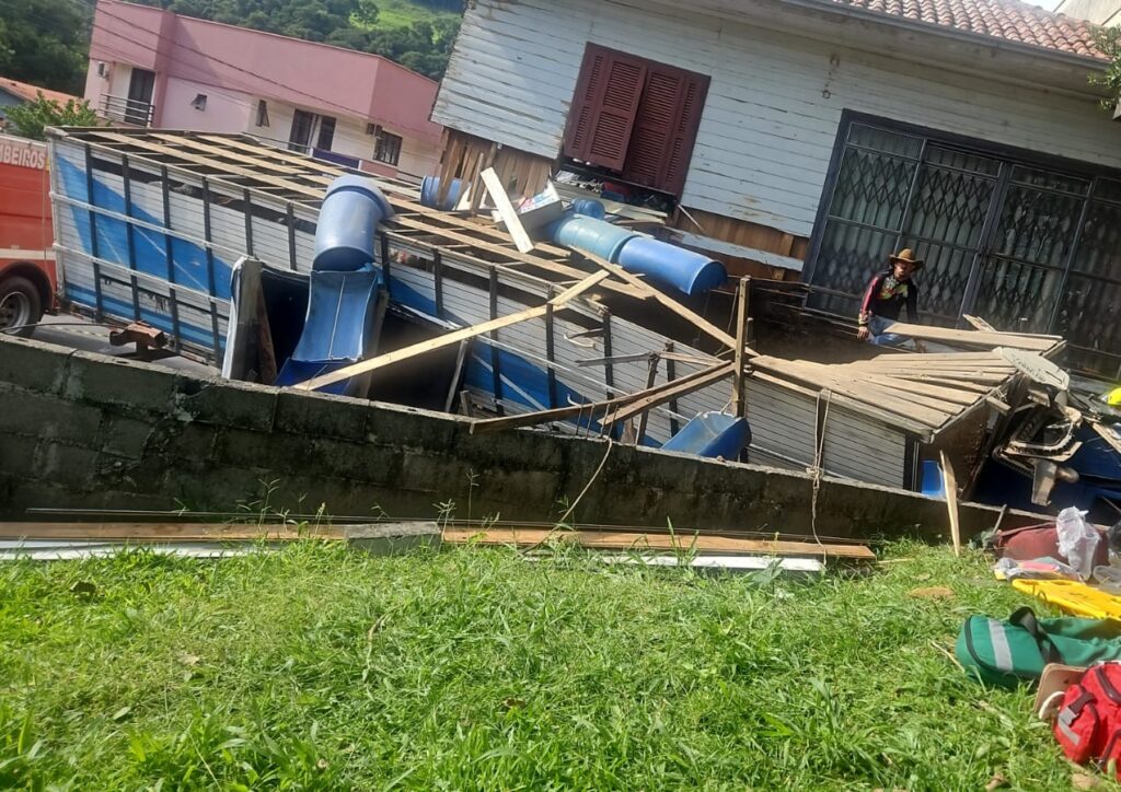 Três pessoas ficaram presas às ferragens após um caminhão carregado com bois perder os freios e atingir uma academia na manhã desta sexta-feira (6). O caso ocorreu em um local conhecido por acidentes semelhantes no município de Ibicaré, no Oeste catarinense.