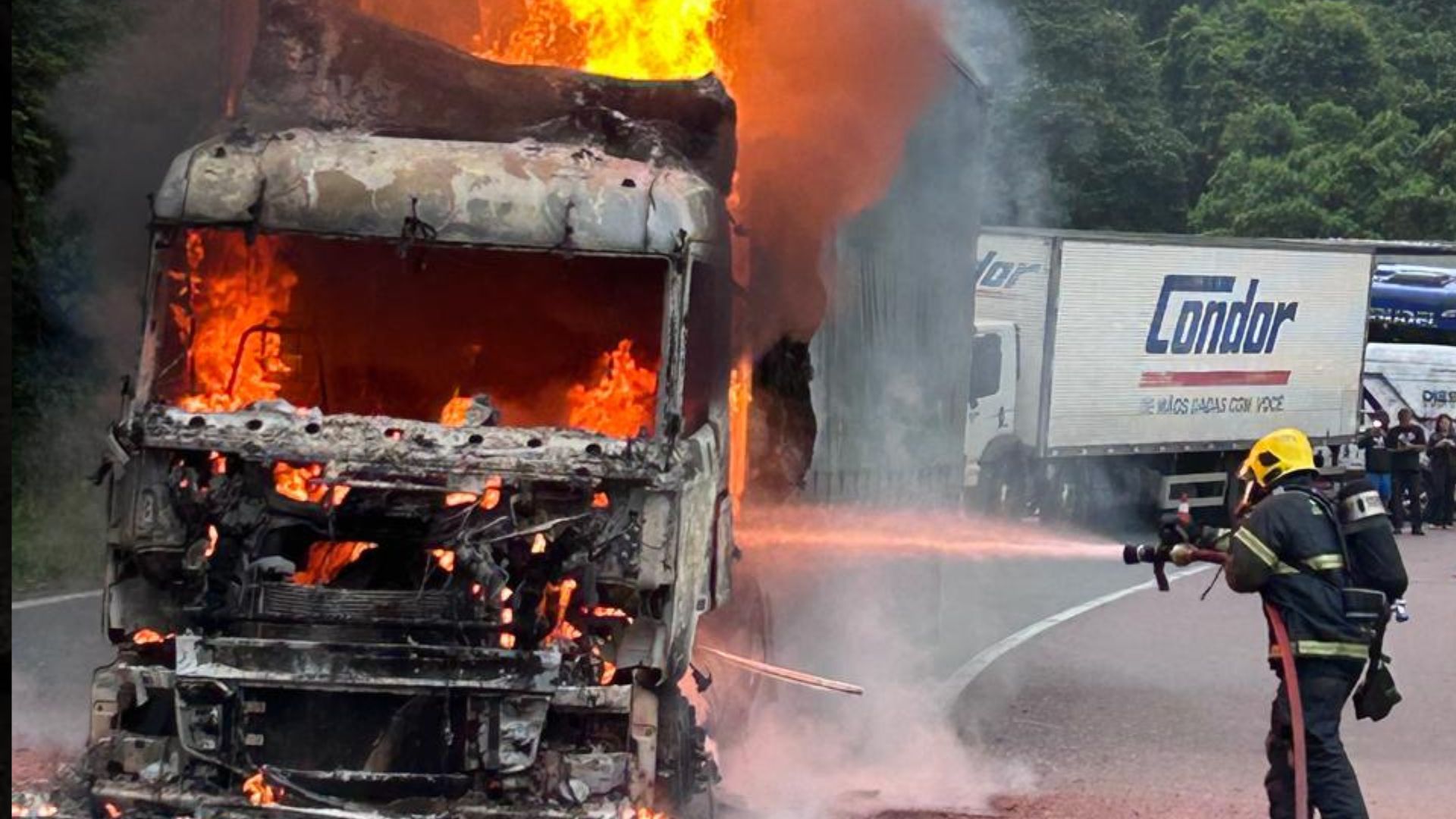 O motorista informou aos bombeiros que ao descer a serra, no km 669, ouviu um estouro seguido do desligamento do veículo e percebeu fumaça na parte inferior da cabine. No momento da chegada da equipe de Garuva, por volta das 6h20, apenas o “cavalinho” do caminhão estava tomado pelas chamas, enquanto a carreta permanecia preservada.