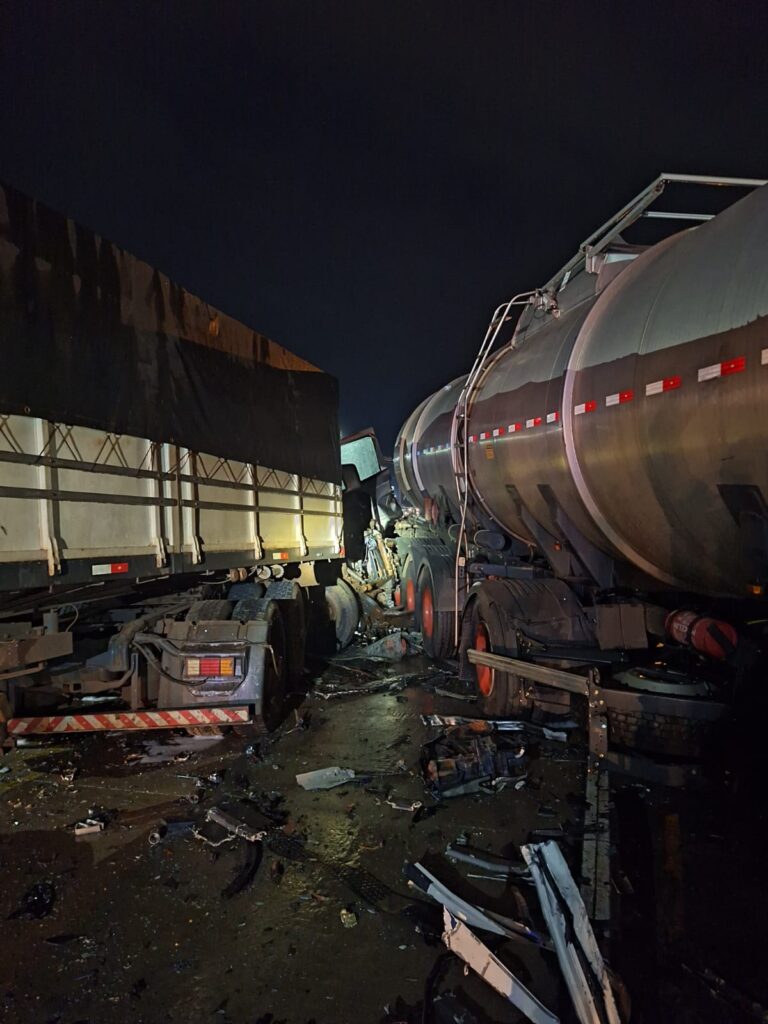 Já o motorista da carreta graneleira foi encontrado caído do lado de fora do veículo, consciente, porém desorientado. Ele foi resgatado às pressas com traumatismo cranioencefálico, sangramento no ouvido e escoriações na face e, a uma distância segura, foi imobilizado e conduzido ao hospital para atendimento médico.