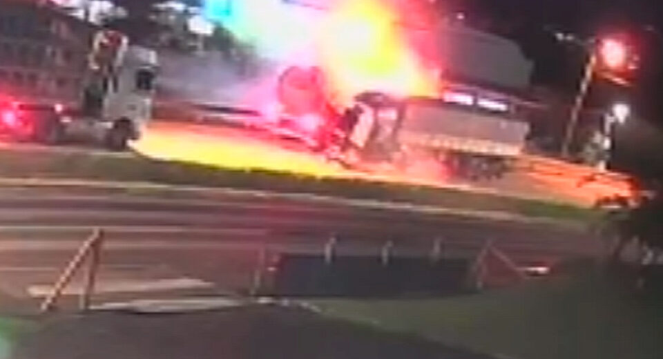 Acidente deixou um dos motoristas em estado grave Uma colisão envolvendo dois caminhões, sendo um deles carregado com 48 mil litros de etanol, provocou um incêndio na BR-163 em São José do Cedro, no Oeste de Santa Catarina. O acidente ocorreu na noite desta terça-feira (30) e deixou um motorista em estado grave. A colisão … Continue lendo Caminhão carregado com etanol explode após colisão na BR-163