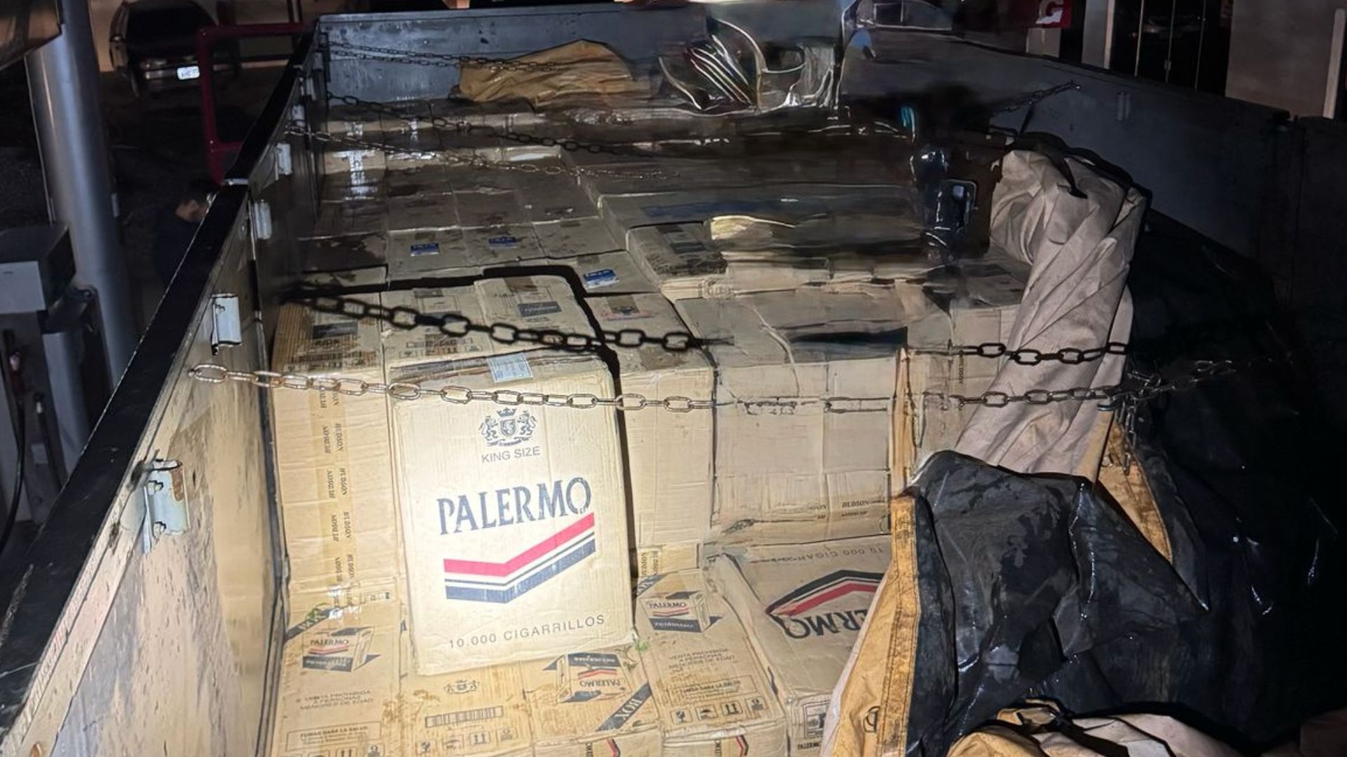 Segundo a PMRv, os policiais iniciaram a abordagem ao caminhão por volta das 20h10, quando viram o condutor fugindo para uma área de mata após avistar a viatura. Ao se aproximarem do veículo, com placas de Porto Alegre, os policiais encontraram o passageiro, um homem de 38 anos, ainda no interior. Ele foi identificado e o sistema revelou que ele já havia sido preso pelo crime de contrabando de cigarros em 2025. Dentro do baú do caminhão, foram encontradas 120 caixas de cigarros de marcas diversas, totalizando 60 mil maços.