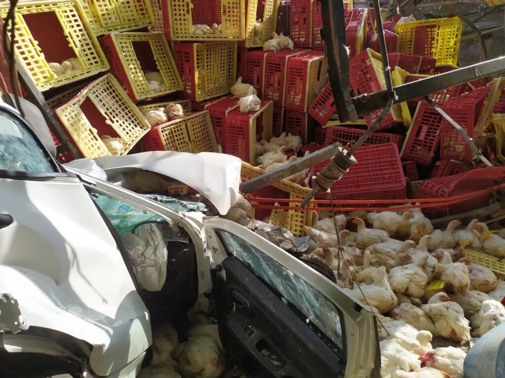 O acidente foi registrado por volta das 6h45, na Rua Santa Catarina. O caminhão, que estava carregado com uma carga viva de frango, teria perdido os freios enquanto descia a ladeira íngreme e atingiu vários carros de passeio, entre eles o que estavam as vítimas. O veículo acabou completamente prensado contra uma edificação, que também foi danificada.