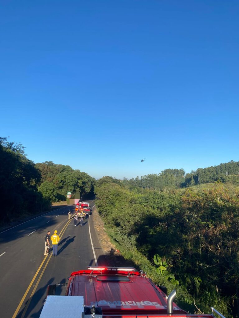 Já a outra vítima, de aproximadamente 30 anos, estava presa dentro do veículo que saiu da pista e caiu em uma ribanceira de cerca de 10 metros, colidindo contra pedras e árvores. Ela estava consciente, mas apresentava dores pelo corpo e suspeita de fraturas. Após o resgate, a vítima foi retirada do carro, recebeu atendimento das equipes de socorro e foi encaminhada de helicóptero ao Hospital Regional do Oeste, em Chapecó.
