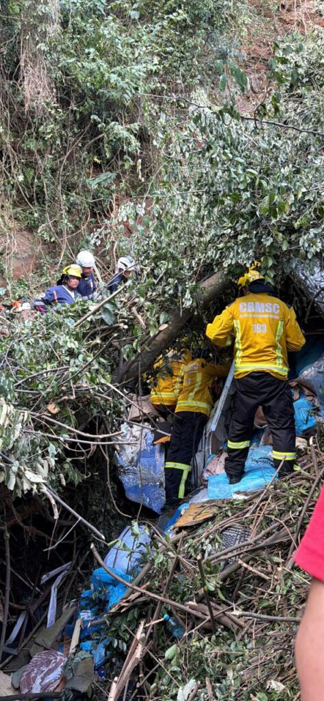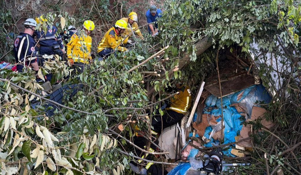 Já no caminhão, o condutor ficou preso às ferragens, sem contato visual direto com os socorristas, comunicando-se apenas por voz. Ele relatava estar com os braços e pernas presos. O resgate exigiu um trabalho complexo e prolongado, com o uso de diversos equipamentos especiais para possibilitar o acesso à vítima.
