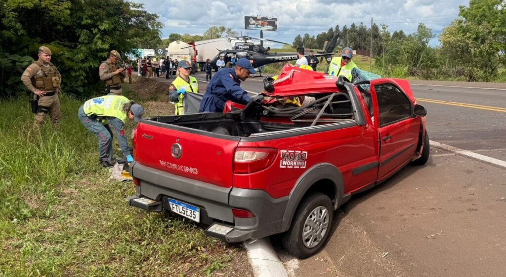 O acidente ocorreu na tarde do último domingo (26) na BR 282, em Cordilheira Alta, no Oeste catarinense. Uma carreta e uma caminhonete de frente e como resultado um homem, de 34 anos, morreu. Com o impacto o carro ficou destruído.