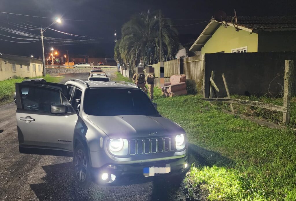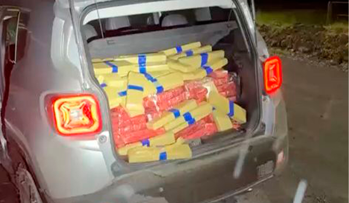 Um carro abarrotado de quase meia tonelada de maconha foi interceptado pelas forças policiais na noite desta segunda-feira (11) na BR-282 em Lages, na Serra catarinense. Um casal foi preso em flagrante e o veículo, um Jeep Renegade com placas clonadas, também foi apreendido.