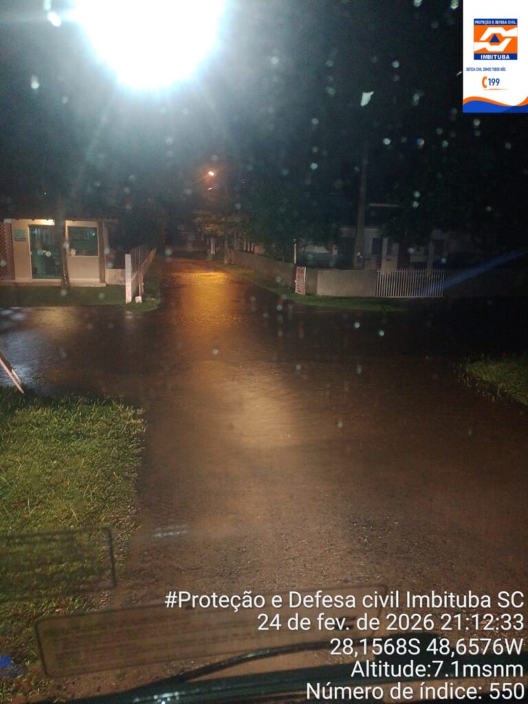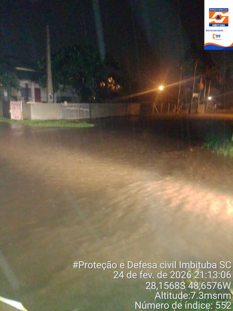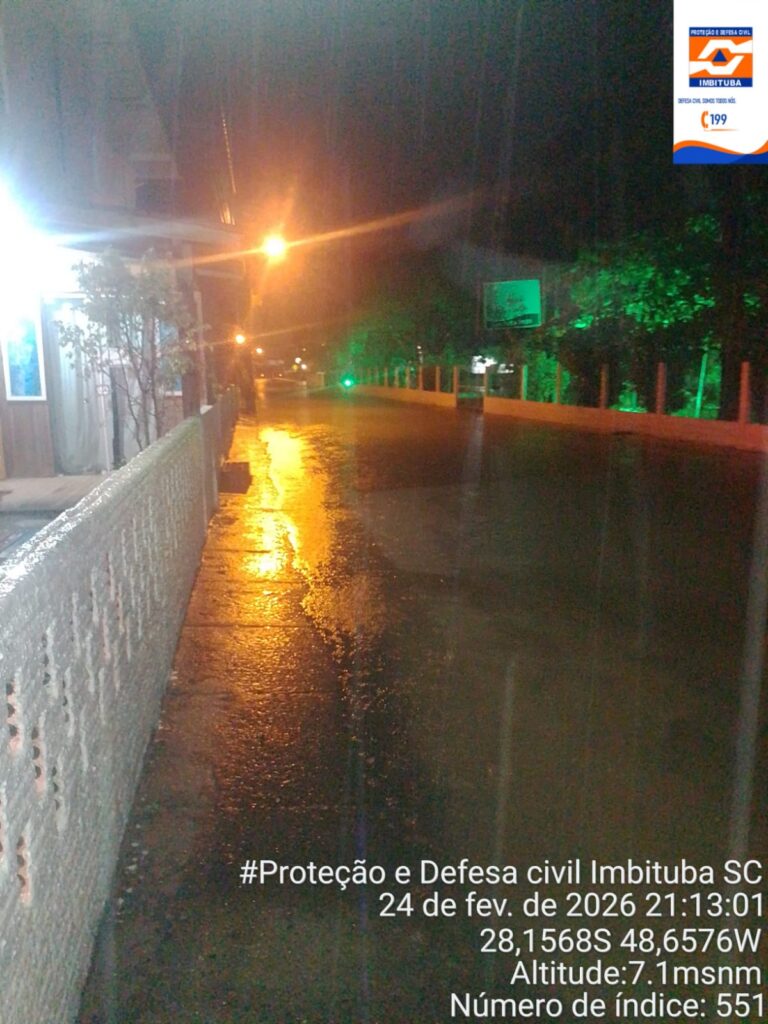 Entre a noite de terça-feira (24) e a madrugada desta quarta-feira (25), municípios do estado registraram volumes expressivos de chuva, causando alagamentos em ruas e bairros e transtornos à população. Na Grande Florianópolis, Palhoça foi um dos municípios mais atingidos, com precipitação de 69,6 mm em 24 horas, segundo monitoramento da Defesa Civil de Santa Catarina. Seis bairros do município registraram enchentes, entre eles Caminho Novo, onde vídeos nas redes sociais mostram carros ilhados e moradores enfrentando dificuldades para se deslocar.