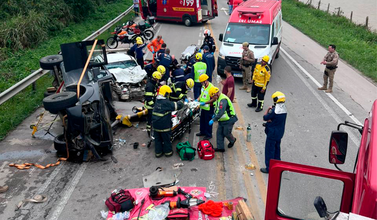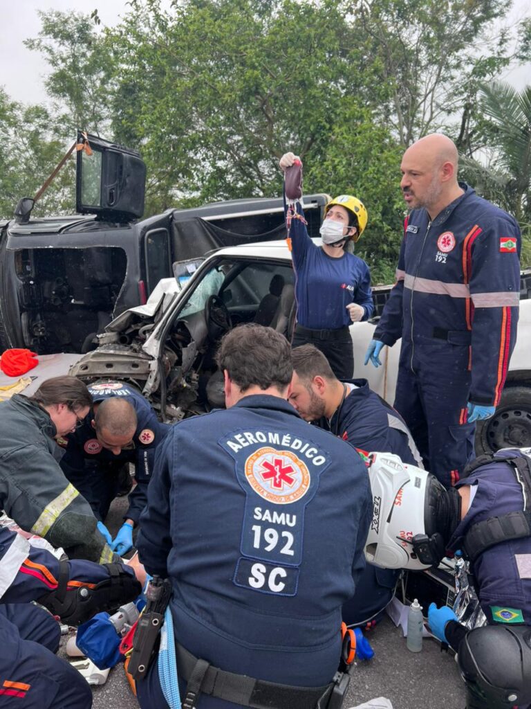 Uma das vítimas estava com hemorragia interna, diagnosticada utilizando um ultrassom portátil, e precisou ser entubada e receber transfusão de sangue ainda no local do acidente. Em seguida, os pacientes foram estabilizados e conduzidos de ambulância para atendimento definitivo no Hospital Marieta Konder Bornhausen, em Itajaí.