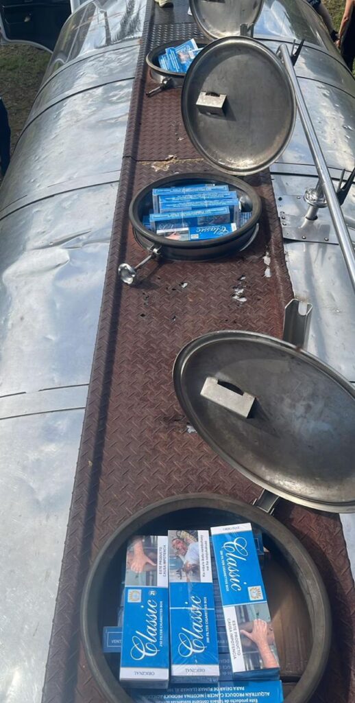 A apreensão foi realizada durante uma operação conjunta coordenada pela Polícia Militar Rodoviária (PMRv) nas proximidades do entroncamento com a PRC-280, na divisa com o Paraná. O Caminhão, que aparentemente era usado para o transporte de leite, chamou a atenção dos policiais. Para surpresa das equipes quando foi realizada a fiscalização do veículo a carga de cigarros contrabandeados do Paraguai foi encontrada.