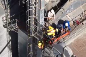 Corpo de Bombeiros de SC resgata vítima de choque elétrico a 22 metros de altura