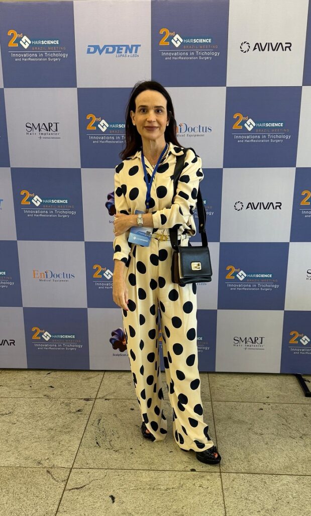 Durante o congresso, a dermatologista dividiu o palco com nomes reconhecidos do segmento, como o Dr. Pablo Cirino, que discutiu novas terapias regenerativas aplicadas à tricologia, e a Dra. Sara Pimentel, que apresentou casos clínicos na área capilar.