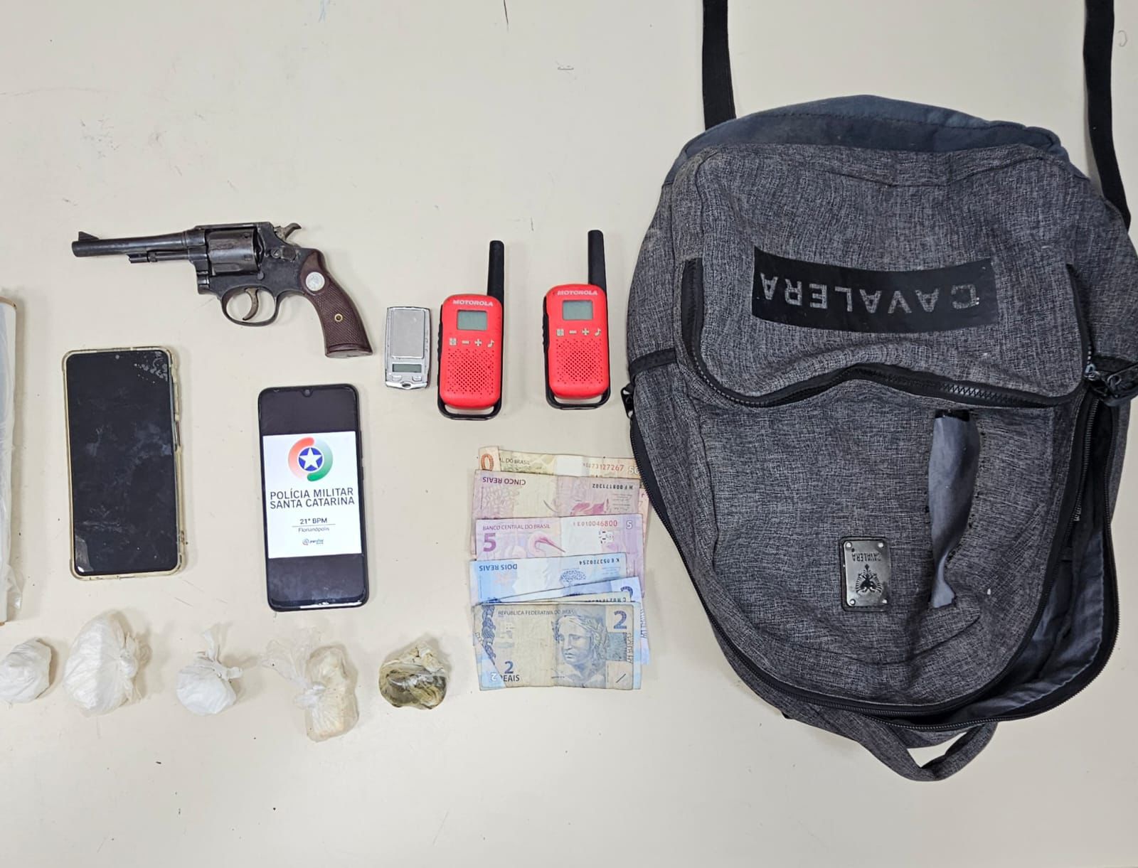 Um deles foi localizado na manhã desta sexta-feira (17) na região do Morro do Caju, no Saco Grande, a caminho do Norte da Ilha. Trocas de informações levaram uma equipe do 21º Batalhão de Polícia Militar à comunidade para deter um dos envolvidos. Chegando ao local, o rapaz, um adolescente, tentou fugir passando por dentro de casas ao perceber a ação policial, mas foi alcançado e apreendido. Junto com ele, havia um revólver utilizado no roubo, drogas, balanças de precisão e rádios comunicadores. Foi descoberto também que existiam dois mandados de busca e apreensão em aberto contra o jovem. Ele foi encaminhado à delegacia para os procedimentos cabíveis.