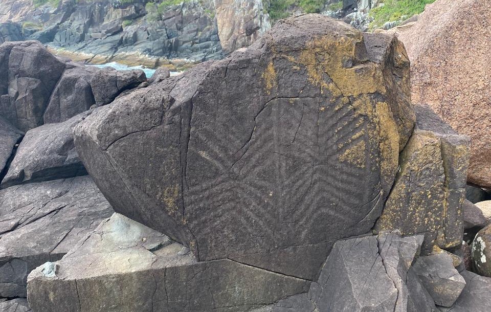 Inscrição rupestre da Ilha do Campeche. Imagem: Flávio Jr.