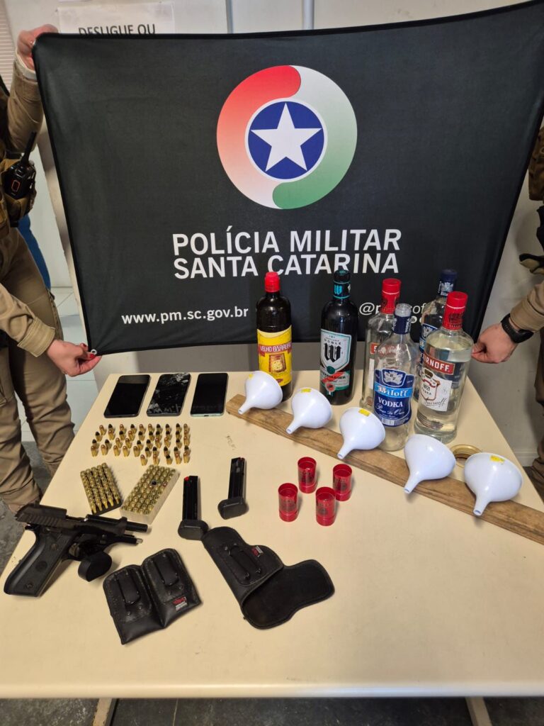Foram apreendidas armas de fogo que pertenciam ao proprietário, munições, funis e bebidas adulteradas. O responsável foi conduzido à Central de Plantão Policial (CPP Norte) para a lavratura dos procedimentos legais cabíveis.