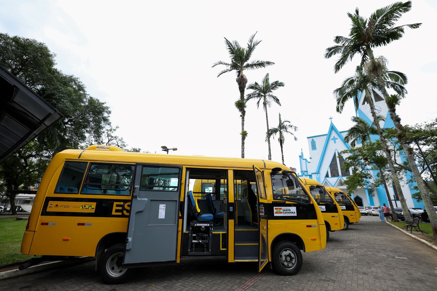 Nove novos ônibus escolares para estudantes da rede estadual de ensino foram entregues nesta quinta-feira (16) para municípios do Sul e da Serra catarinense. A aquisição da frota faz parte do programa Escola Boa, do Educação Levada a Sério, e teve um investimento de R$ 3,9 milhões provenientes do governo do estado. Esses veículos fazem parte de um total de 100 que serão disponibilizados para os alunos nos próximos meses.