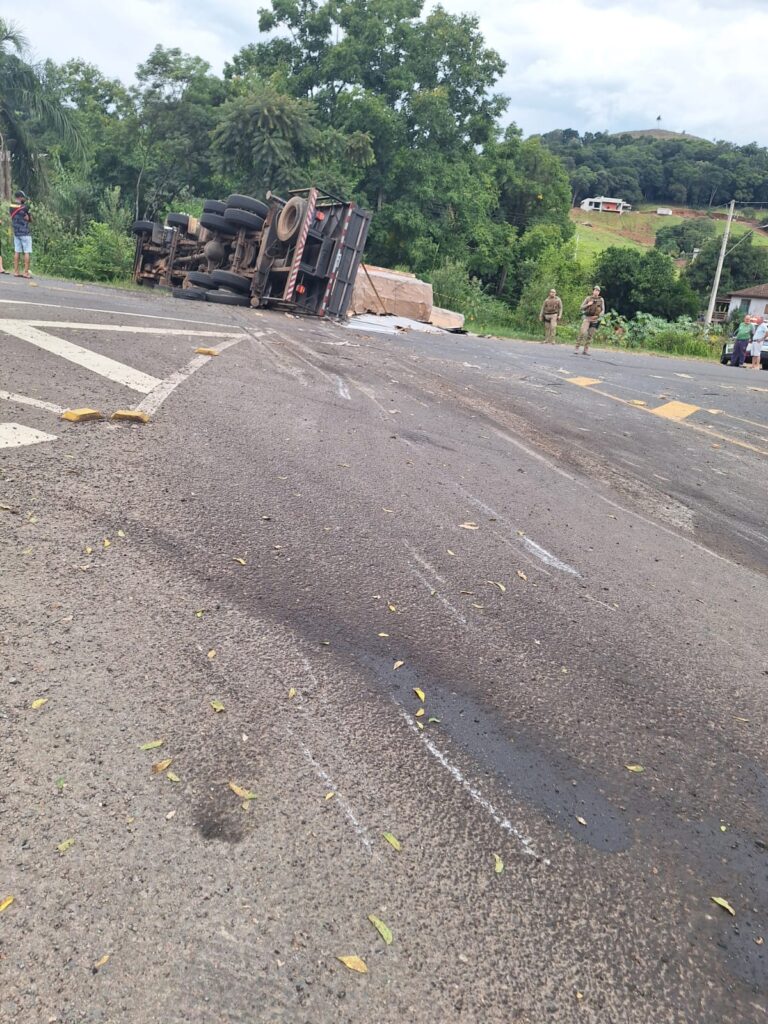 Veículo tombou na SC-155; causas podem estar ligadas a falha mecânica