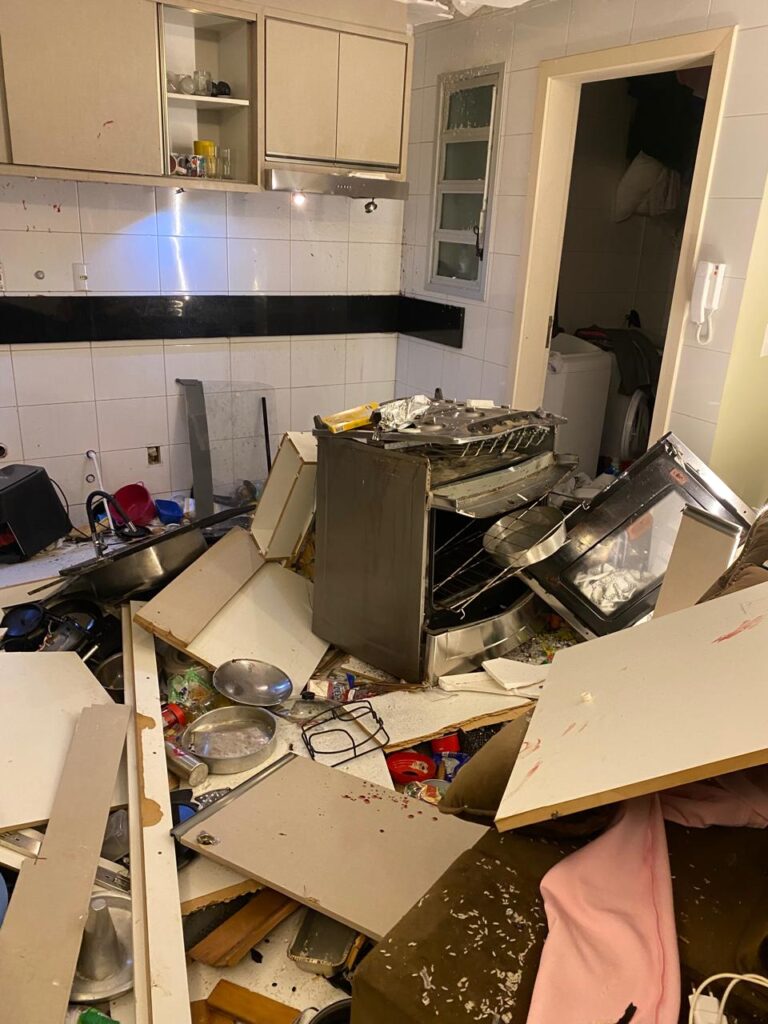 A explosão provocou danos no interior do apartamento, mas não comprometeu a estrutura do prédio. Duas viaturas foram acionadas ao local, e quando chegaram, tanto a energia elétrica quanto o registro de gás canalizado já estavam desligados.