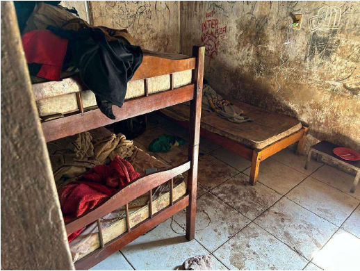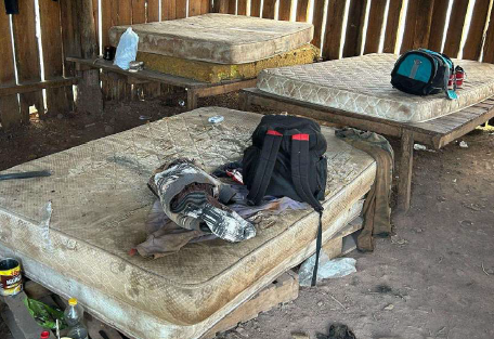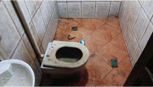 Registros feitos pelos fiscais revelaram alojamentos em barracos precários de chão batido, camas em beliches e colchões sobre pallets e tábuas e uma cozinha composta por uma fogueira de chão e estantes improvisadas. Todo o local, inclusive o banheiro único, estava em péssimas condições de higiene.