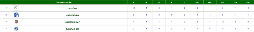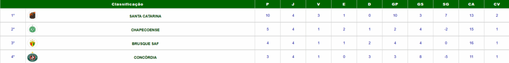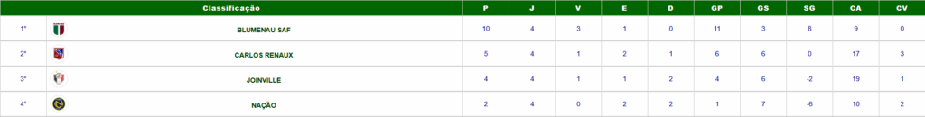 Os três restantes estão em outros grupos. Santa Catarina, Blumenau e Caravaggio são os líderes de seus agrupamentos, todos com 10 pontos, e dependem de apenas um empate para conquistar a classificação.