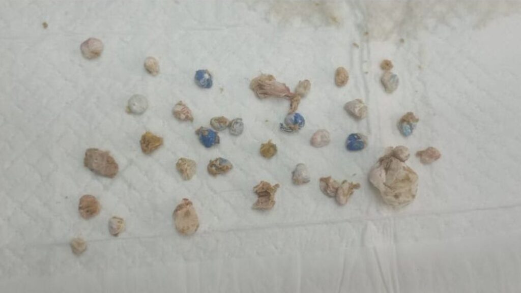 De acordo com a clínica veterinária que realizou o atendimento no bairro Floresta, o animal de apenas 3 meses de idade chegou em um quadro de intoxicação e vomitando parte da droga. Ao longo do dia, foram feitos exames de imagem, que possibilitaram constatar que havia mais corpos estranhos no estômago da cachorra.