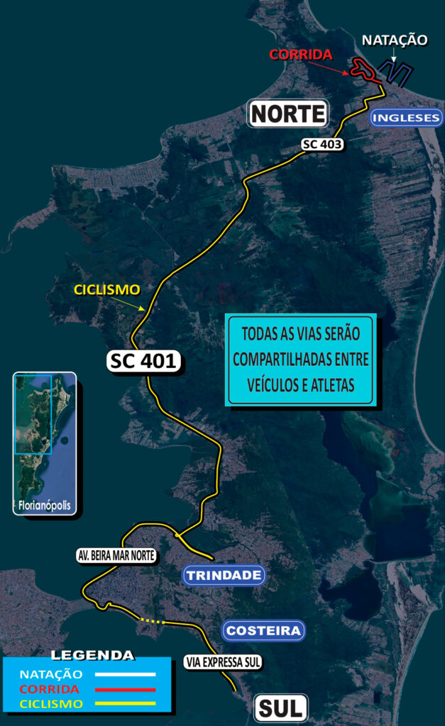 As mudanças serão focadas no trecho percorrido de bicicleta, que inicia no Oceania Park Hotel, segue pela Rua do Marisco até acessar a SC-403 e, posteriormente, a SC-401, na altura da Havan. Os atletas seguem pela rodovia estadual até a Avenida da Saudade, Elevado do CIC e Avenida Prof. Henrique Fontes, fazendo o retorno na altura do Shopping Villa Romana.