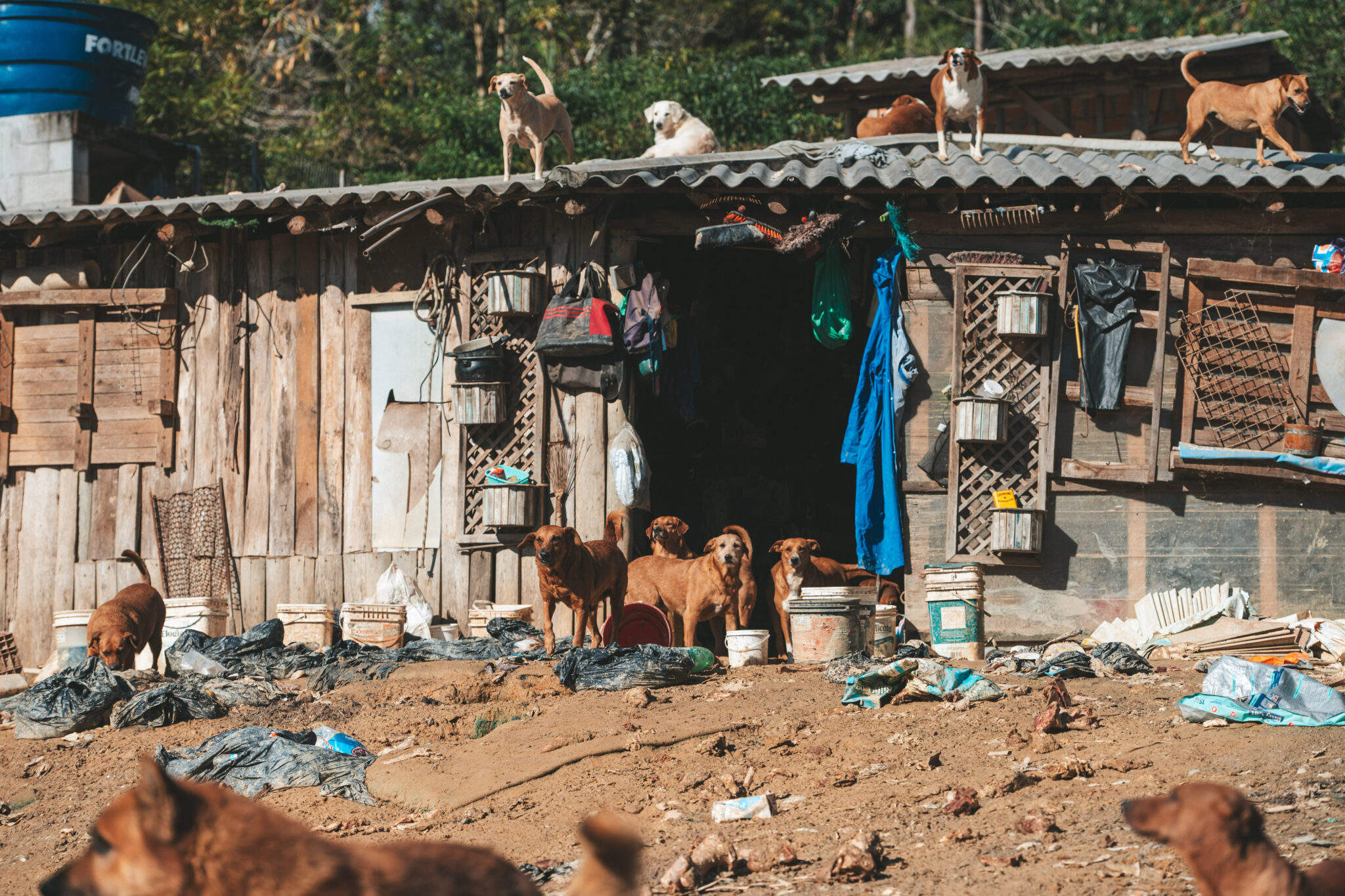 Os cães viviam abandonados em um ambiente insalubre, em espaço reduzido, sem ventilação adequada e expostos a resíduos orgânicos. O cenário era considerado propício à disseminação de zoonoses, oferecendo risco tanto à saúde dos animais quanto à saúde pública. Durante a fiscalização, também foram encontrados animais mortos armazenados dentro de uma geladeira, em condições totalmente impróprias, o que representava risco à proliferação de bactérias e vetores. No entorno, o acúmulo de entulhos e materiais favorecia a presença de insetos e roedores, além do risco de contaminação do solo e das águas superficiais e subterrâneas pela infiltração de dejetos.