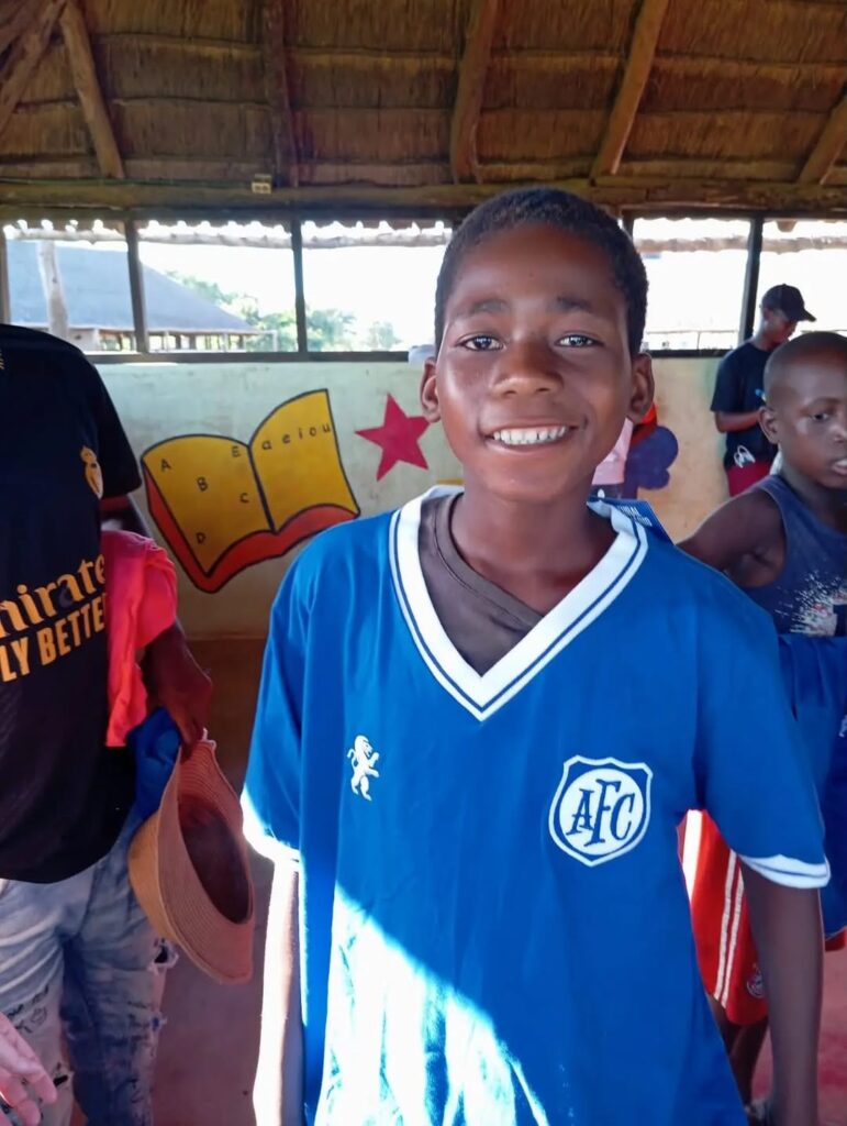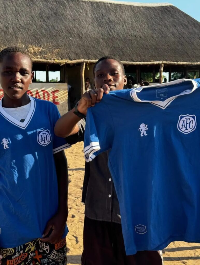 Crianças da Comunidade da Barragem, em Moçambique, foram presenteadas com 15 camisetas do clube