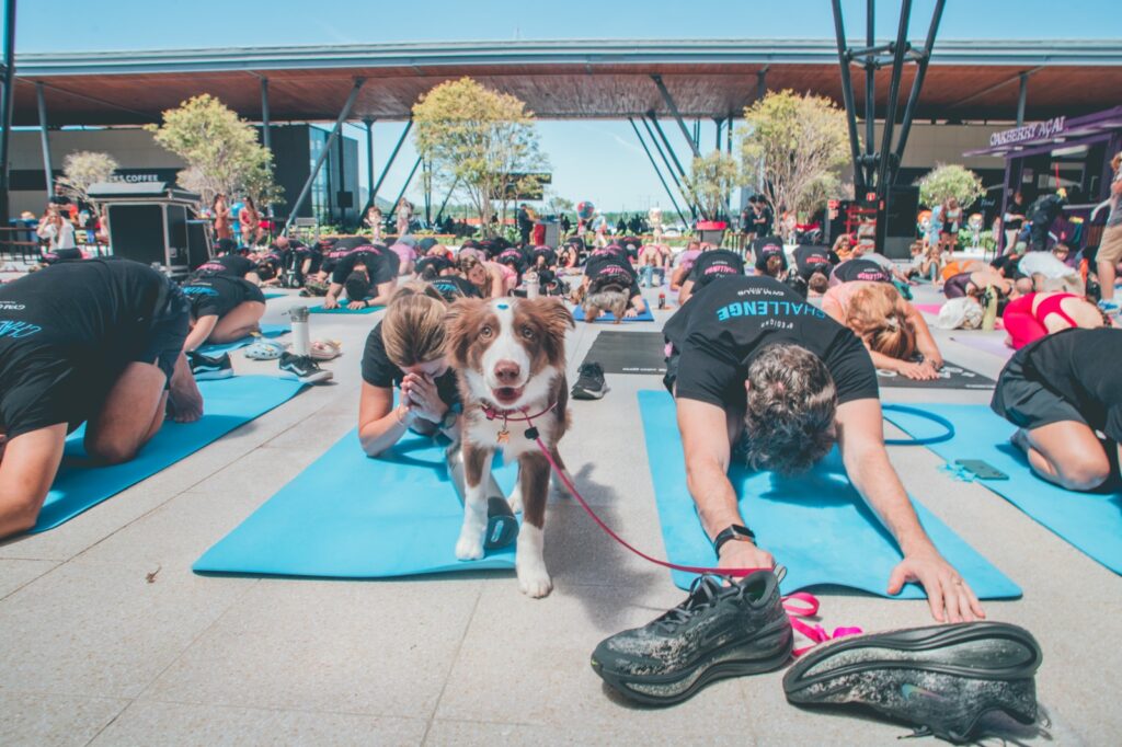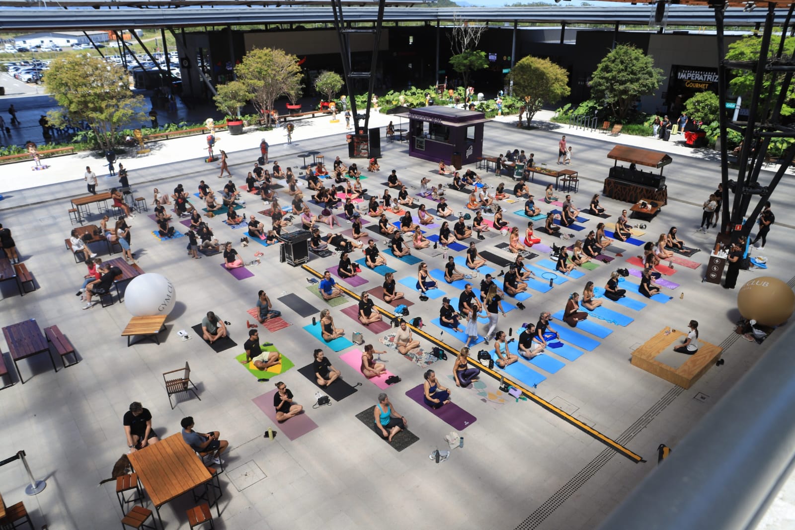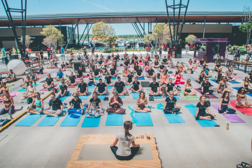 A quarta etapa do Challenge da Gym Club, uma competição que mobiliza alunos em eventos, confraternizações e competições, foi especial: recebeu a comunidade em uma aula de yoga no Boulevard do Floripa Airport. Mais de 100 praticantes acompanharam a aula da professora Patrícia Tomé no sábado de manhã, com exercícios de alongamento, posturas e meditação. Um convite oportuno para respirar e acalmar a mente na época mais corrida do ano. Fomentar o senso de comunidade e a saúde social está entre os principais diferenciais da Gym Club, wellness club referência no Sul do Brasil. O Challenge segue até 14 de dezembro, com encerramento e gincana na areia.