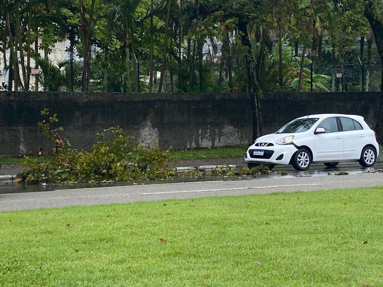 Um veículo que estava passando pela Avenida Beira-Mar Norte, em Florianópolis, foi atingido por um galho de grande porte que caiu de uma árvore na altura do Villa Romana Shopping, na região do bairro Trindade, no início da tarde desta segunda (6). O carro ficou parcialmente danificado, mas não houve relato de feridos. O trânsito no local, no sentido centro-bairro, é lento por conta do ocorrido. Até o momento do fechamento desta matéria, o galho seguia sobre a pista.