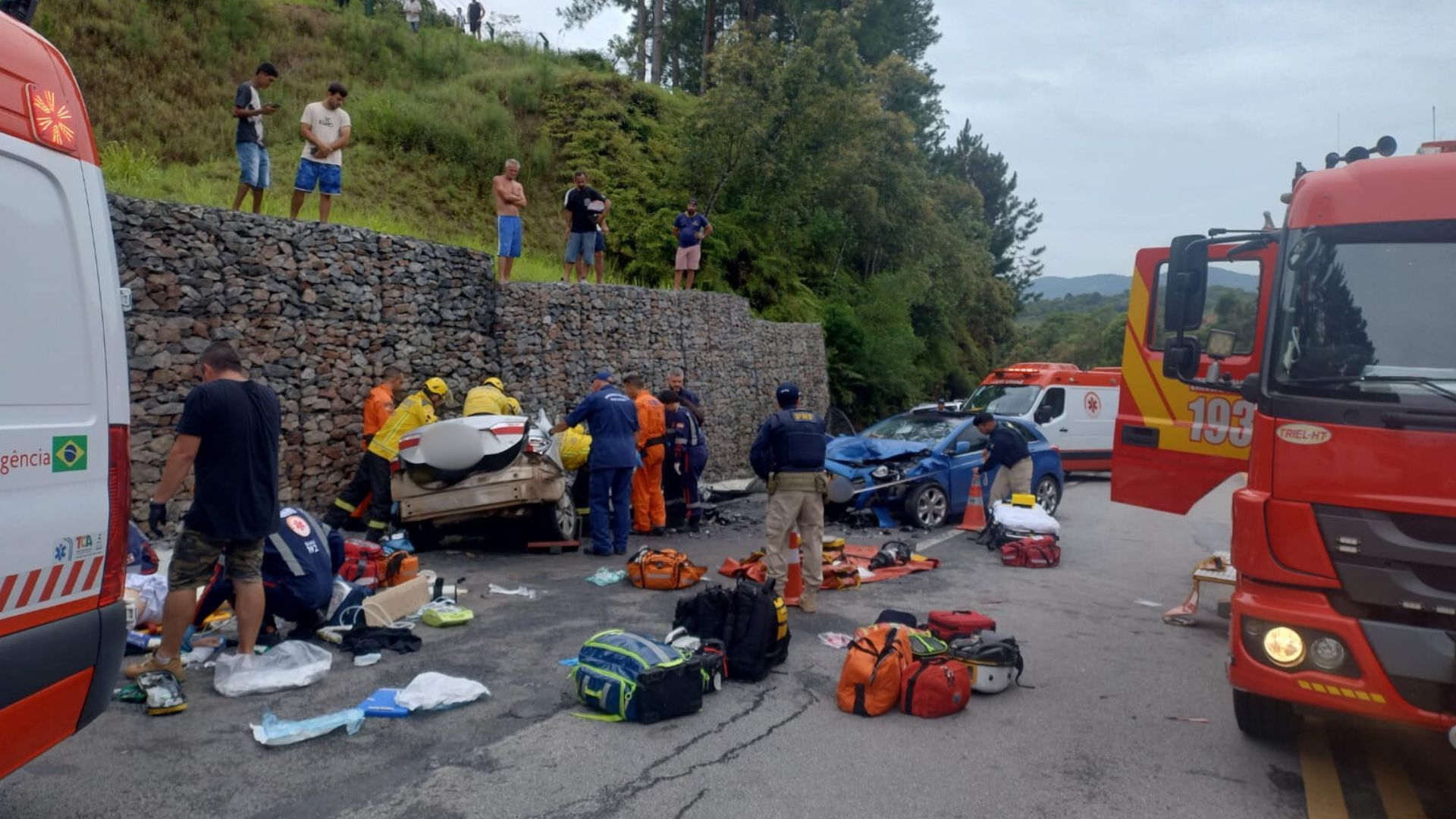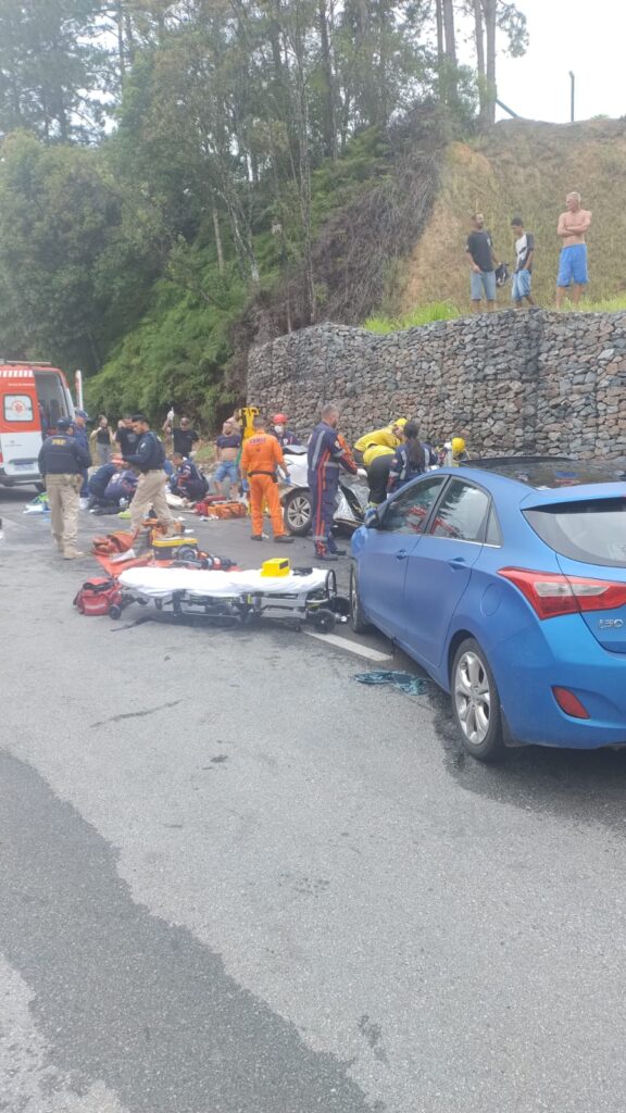 Testemunhas afirmaram que um dos automóveis teria invadido a pista contrária, vindo a colidir lateralmente com o outro veículo. O atual estado das vítimas não foi informado. A ocorrência conta com o apoio do helicóptero do CBMSC, equipes da Polícia Rodoviária Federal (PRF) e do Serviço de Atendimento Móvel de Urgência (SAMU).