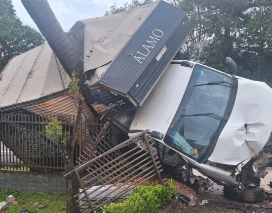 Logo em seguida, outro caminhão que vinha no sentido oposto colidiu contra o primeiro.