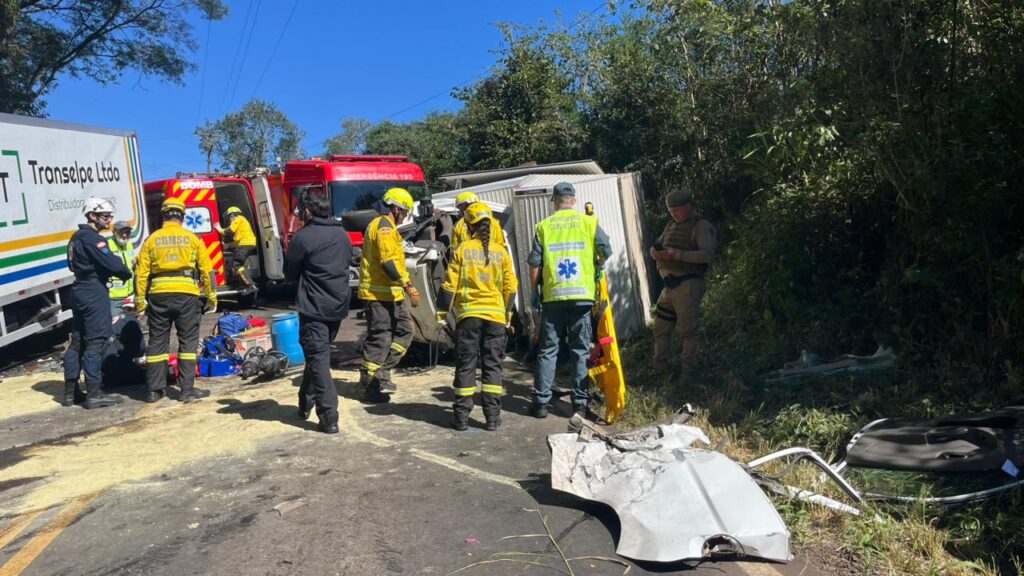 O acidente ocorreu por volta das 11h20 na SC-155, sentido município de Seara a Xavantina, e envolveu um caminhão Volkswagen e outro Hyundai. Os dois condutores foram encontrados presos às ferragens, com as pernas sob os painéis dos caminhões.