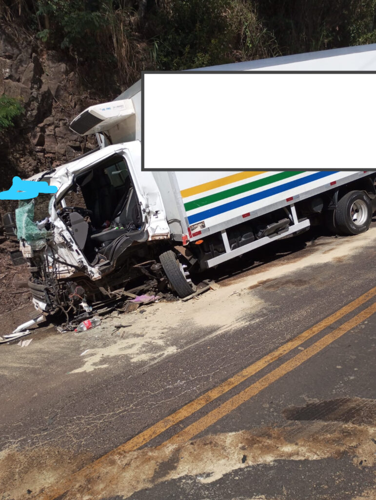 Colisão entre caminhões deixou 3 feridos, sendo dois presos às ferragens