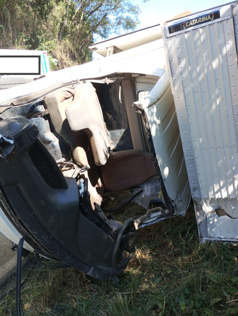 O segundo motorista, ainda segundo o CBMSC, estava consciente e orientado dentro do caminhão tombado, mas relatava dor na perna esquerda. Ele foi avaliado pelo médico do Saer e apresentava suspeita de luxação do fêmur esquerdo, além de trauma cranioencefálico leve e cortes no braço esquerdo.