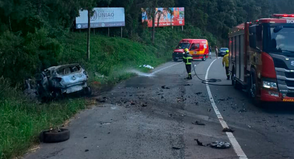 Gravíssimo acidente deixa criança e motorista mortos em carro em chamas em SC