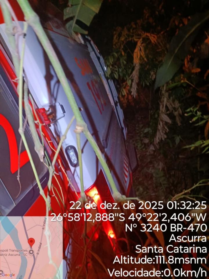 Durante o deslocamento na BR-470, próximo ao Posto Delta, o paciente apresentou um surto psicótico, conseguiu se soltar da maca, passou a agredir a técnica de enfermagem e avançou contra o motorista da ambulância, que precisou parar o veículo. O socorrista entrou em luta corporal com o homem, sendo ambos agredidos mutuamente, e acabou sendo arremessado para fora da ambulância, enquanto a colega precisou saltar para evitar ferimentos graves.