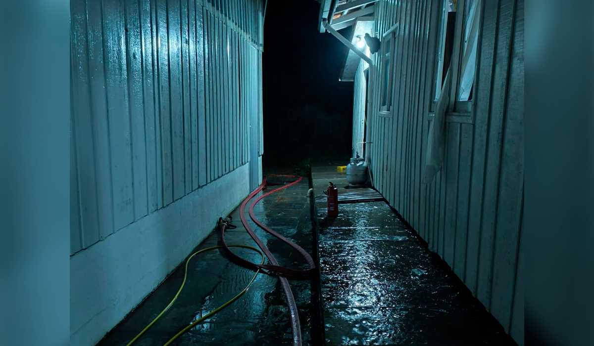 Um caminhão de combate a incêndios foi acionado para a ocorrência e uma das equipes dos bombeiros decidiu assumir o “risco aceitável no momento” de acessar o local e extinguir diretamente as chamas da casa e da vítima – que continuava em surto e em chamas dentro da casa – com um extintor de incêndios. Os agentes conseguiram apagar o fogo que estava concentrado na janela, cozinha e na sala da frente da casa. Nesse instante, o homem correu dos militares e se trancou dentro do banheiro, onde ligou o chuveiro.
