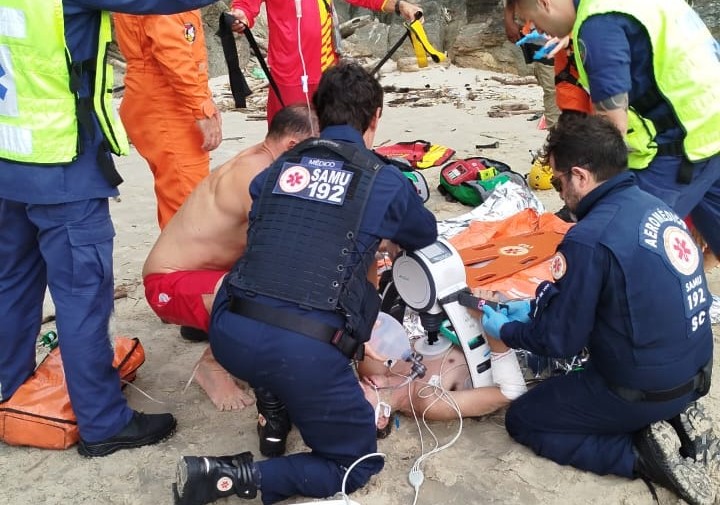 Devido a gravidade, e o local ser de difícil acesso, foi acionada a aeronave do CBMSC com uma equipe médica do Serviço Móvel de Urgência (SAMU). Por mais 24 minutos os socorristas deram continuidade aos procedimentos de reanimação. Após quase 50 minutos de trabalho ininterrupto, a vítima apresentou retorno completo dos sinais vitais. Depois de estabilizado, o paciente foi levado de helicóptero para o Hospital e Maternidade Marieta Konder Bornhausen, em Itajaí. O estado de saúde atualizado da vítima não foi informado até o momento.